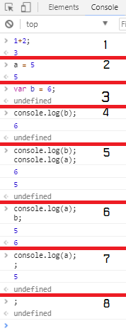แต่ถ้าใช้คำสั่ง console.log(1 + 2 + 3); มักพบคำว่า undefined ปรากฎขึ้นมาอีก 1 บรรทัดเสมอ